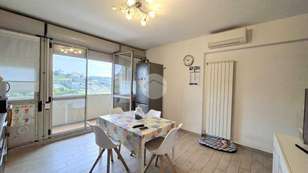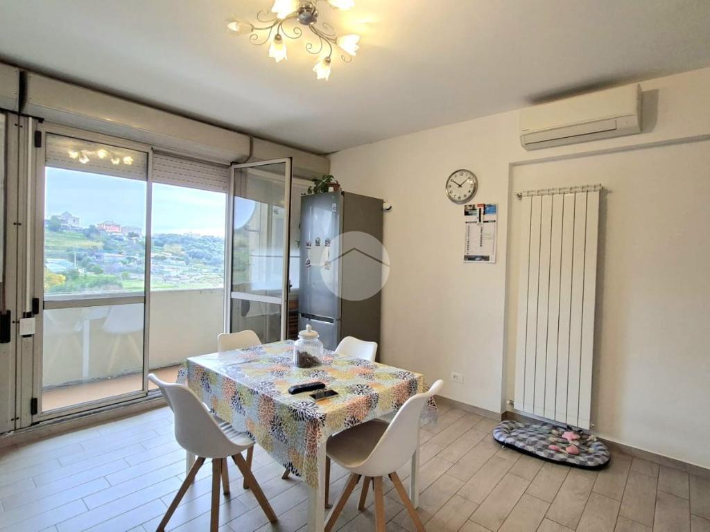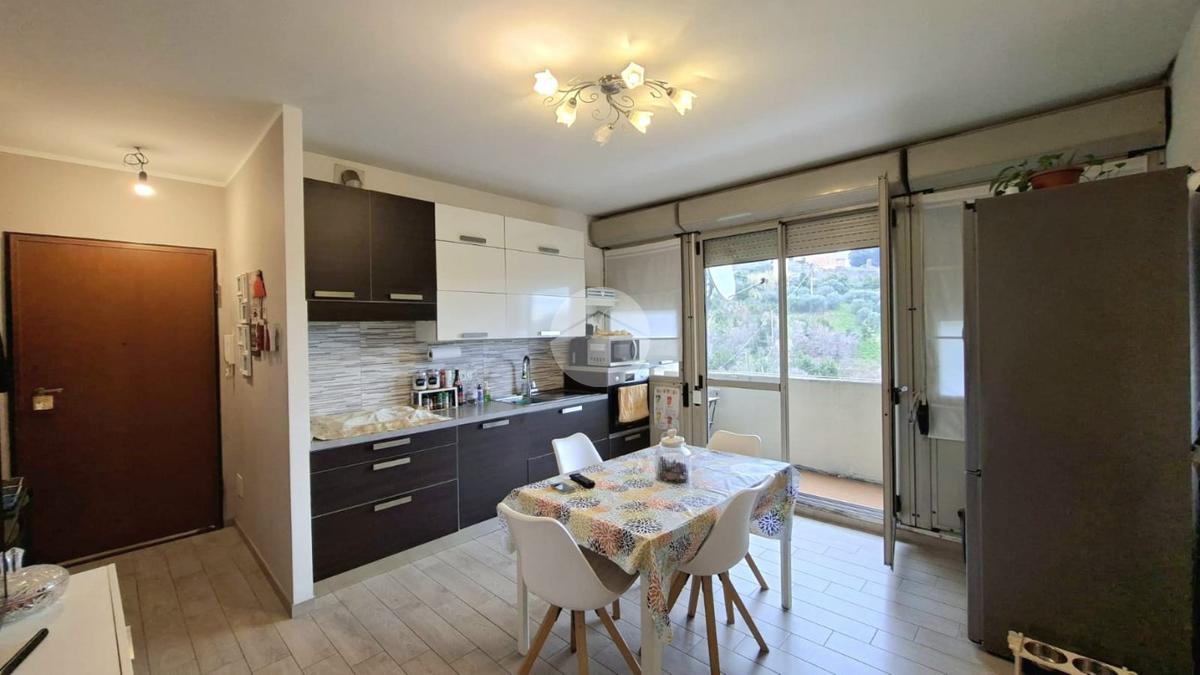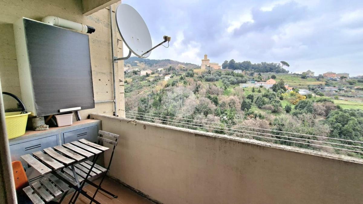L'immobile offre un'accogliente ingresso in ampia zona giorno con cucina a vista e accesso diretto al balcone esposto a EST da cui si può godere di una piacevole vista sul verde e di uno scorcio sul mare.
