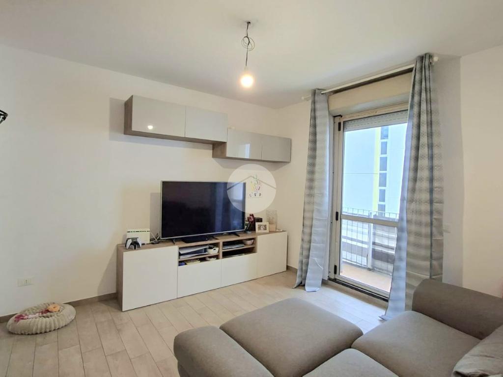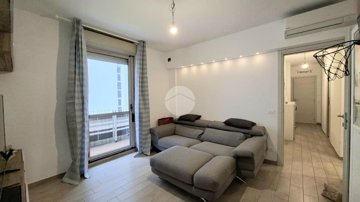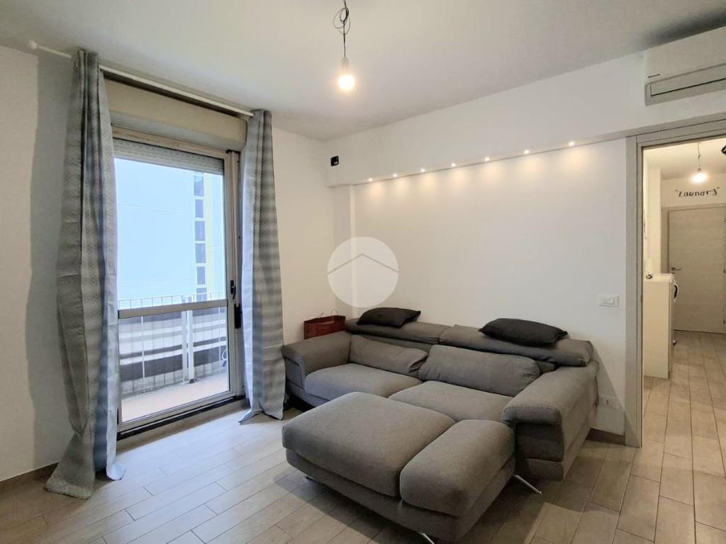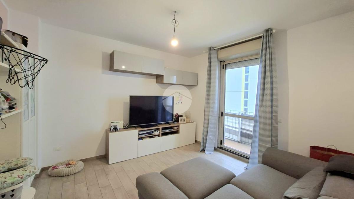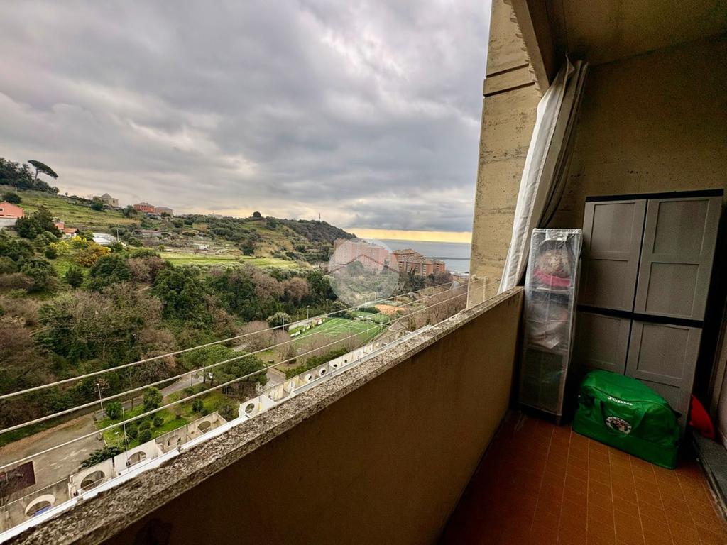 L'immobile offre un'accogliente ingresso in ampia zona giorno con cucina a vista e accesso diretto al balcone esposto a EST da cui si può godere di una piacevole vista sul verde e di uno scorcio sul mare.